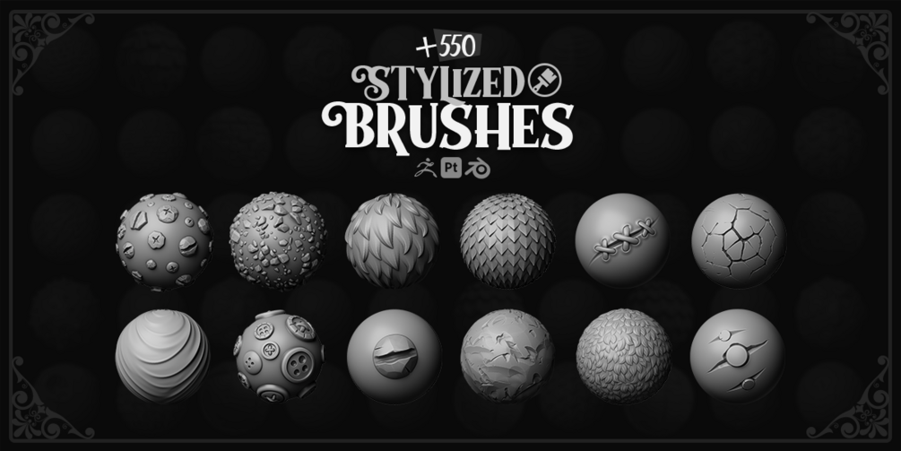 - The sculpt brushes are prepared for ZBrush, Blender, and Substance Painter. Alpha images are also included in case you want to use them in other softwares.